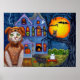 Affiche Halloween Cat Dog Costume Haunted Victorian House