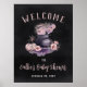 Designed to match our Baby is Brewing Halloween themed baby shower invitations, this spooky welcome sign features a smoky cauldron adorned with a pumpkin and flowers in a color palette of charcoal, pink, and purple, with "a baby is brewing" beneath. Personalize with your event name and date to welcome guests to your baby shower in spooky style.