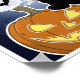 Le design comprend un chat noir assis à côté d'un citrouille sculpté au visage souriant. L'arrière - plan comprend un ciel nocturne avec une pleine lune et plusieurs chauves-souris volantes. L'image représente probablement les thèmes d'Halloween, étant donné la présence du chat noir, souvent associé à la superstition et à la fête, et le jack-o’-lanterne, qui est une décoration d'Halloween commune. La pleine lune ajoute à l'atmosphère étrange que l'on apprécie habituellement pendant les célébrations d'Halloween.