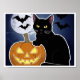 Affiche halloween chat noir avec citrouille