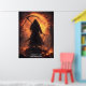 Debout devant une lune d'orange sanguine, le moissonneur de minuit émerge enveloppé d'ombres et de fumée, brandissant une escroquerie issue d'une peur ancienne. Entourée de citrouilles hantés et de ruines brûlées, cette redoutable Faucheuse veille en silence, une sentinelle de l'heure la plus sombre d'Halloween. Un hommage glaçant à l'esprit des nuits sombres et des âmes oubliées.