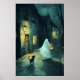 Affiche Halloween Fantôme et chat Tricot ou traitement