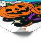 Téléchargement numérique instantané présentant une scène de fête d'Halloween amusante avec un fantôme amical, des citrouilles jack-o’-lanterne, une boule de disco, des chauves-souris, des bougies et des décorations festives. PNG de haute qualité sur un arrière - plan transparent. Idéal pour les invitations d'Halloween, artisanat pour enfants, posters, autocollants, pages de livres à gratter et projets do-it-yourself.