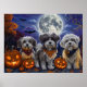 Libérez l'esprit éffrayant avec ce design d'Halloween étrange avec une meute de chiens sous un ciel sombre et clair de lune, entourée de chauves-souris volantes et de citrouilles brillants. Parfait pour ceux qui aiment une touche de plaisir effrayant avec leurs amis en fureur !