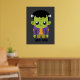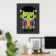 Une affiche avec une image d'Halloween amusante avec un monstre Frankenstein vert.