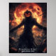 Sous une lune de sang éblouissante, la Faucheuse Citrouille monte du champ maudit, cousue dans l'ombre et couronnée d'un sinistre sourire. Entouré d'arbres tordus et de terre brûlée, ce terrifiant épouvantail se présente comme le présage ultime de l'Halloween — une vision terrifiante forgée dans le feu, la peur et le folklore.