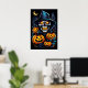 Lancez l'esprit d'Halloween avec ce poster captivant ! Un squelette qui fait froid dans les os, ses yeux gonflés d'un feu d'un autre monde, se prépare pour les festivités hantantes. Les citrouilles sculptés tiennent la sentinelle, jetant une lueur étrange qui danse avec la présence spectrale. Cette affiche illustre l'essence de l'anticipation palpitante d'Halloween.