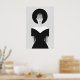 Découvrez le charme intemporel de ce portrait de mode noir et blanc saisissant. L'image présente une femme incarnant une élégance sobre, encadrée par un casquette noir parfaitement circulaire et surdimensionné qui crée un effet halo spectaculaire autour de la tête. Sa robe noire sophistiquée hors de l'épaule avec son col gracieux complète l'esthétique minimaliste, mettant en valeur sa peau de porcelaine et ses traits délicats. La palette monochrome à contraste élevé accentue les lignes épurées, les textures subtiles et la silhouette puissante, faisant de cette pièce une véritable affirmation du chic classique. Avec son regard direct et son style raffiné, cette oeuvre est une célébration de la mode iconique et de l'art minimaliste, parfait pour les intérieurs modernes et classiques.