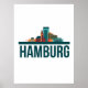 Moin ! Belle affiche montrant l'horizon de la ville allemande de Hambourg avec tous les sites célèbres comme l'Elbphilharmonie, le Speicherstadt, le port de Hambourg ou le Michel. Pour chaque idée cadeau de Hamburger extraordinaire.