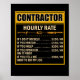 Affiche Handyman Graphique des prix Entrepreneur Taux hora