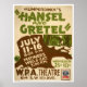 De la vaste collection d'affiches de Zazzle Work Projects Administration (WPA) et War—un assortiment extraordinaire d'images emblématiques destinées à promouvoir les arts, le bien-être public et le patriotisme—Cette affiche commémorative présente une affiche pour la présentation de Humperdinck's -Hansel et Gretel- au W.P.A. Theatre, montrant une souche d'arbre et un chalet dans le bois ods, créée en 1937.