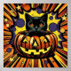 Affiche Happy Meow-lloween ! : Chat noir Éffrayant à Hallo
