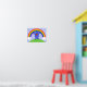 Les couleurs vives de l'arc-en-ciel et les vagues bleues fantaisistes de l'arrière - plan semblent faire écho à l'humeur joyeuse de ce mignon petit monstre bleu.