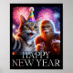 Affiche Happy New Year 2026 Funny Cat Bigfoot Party Art
