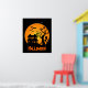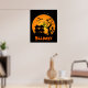 Poster de la Maison Halloween Hanted. affiche cool montrant une maison hantée. Un arbre éffrayant, des chauves-souris, des fantômes, une croix et une grande lune derrière eux sur un arrière - plan noir composent cette image d'une maison hantée.