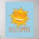 Vector cartoon sun character wearing sunglasses with Hello Summer text. Great for summertime. Keywords: beach, blazing, cartoon, cheerful, fire, flame, friendly, glasses, happy, heat, hot, humor, illustration, season, seasonal, shades, smile, star, summer, sun, sunglasses, vacation, vector, weather, icon, summertime