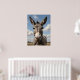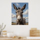 A warm and expressive portrait of a curious donkey set against a blue sky, evoking charm and tranquility in a rural setting.