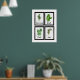 Cette affiche encadrée d'herbes noires aurait l'allure d'un salon de thé ou d'un décor maison. Ce sont des photos de romarin, basilic, menthe et sauge.