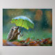 Affiche Hérisson mignon tenant un parapluie de feuilles