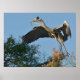 Heron gris (Ardea cinerea) arrivant au sommet d'un arbre avec un écume dans le bec en Camargue est une région naturelle située au sud d'Arles, France, entre la mer Méditerranée et les deux bras du delta du Rhône