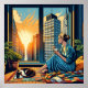 Affiche Heure du matin dans la ville | Une femme qui réflé