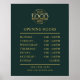Doté d'un design épuré minimaliste en vert foncé et or, ce poster personnalisé est parfait pour les petites entreprises. Personnalisez-le avec votre texte pour présenter clairement vos heures d'ouverture. Idéal pour l’image de marque et les besoins promotionnels de l’entreprise, assurez-vous que vos clients le savent toujours lorsque vous êtes ouvert!
