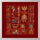 Affiche Hiéroglyphes et divinités égyptiennes en rouge