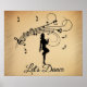Rustic flowing bars of music above a tap dancer and Let's Dance