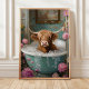 Affiche Highland Cow in Floral Bathbath Art Imprimer