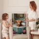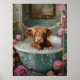 Ajoutez un peu de fantaisie à vos murs avec ce joli imprimé d'art avec une vache des montagnes qui profite d'un bain à bulle relaxant dans une baignoire vintage. Entourée de papier peint fleuri, de fleurs joyeuses et de bulles subites, cette scène ludique mélange le charme d'une ferme à de douces vibes de cottagecore. Parfait pour le décor de salle de bain, les maisons de ferme, ou comme un cadeau humoristique pour les amateurs de vaches, cette impression apporte sourires et style à tout espace.