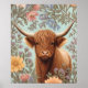 Affiche Highland Cow Pastel William Morris Inspired Floral