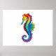 Artistiquement dessiné, lumineux, arc-en-ciel, cheval de mer polygonale sur arrière - plan blanc. Un tatouage brillant.