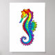 Artistiquement dessiné, lumineux, arc-en-ciel, cheval de mer polygonale sur arrière - plan blanc. Un tatouage brillant.