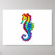 Artistiquement dessiné, lumineux, arc-en-ciel, cheval de mer polygonale sur arrière - plan blanc. Un tatouage brillant.