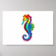 Artistiquement dessiné, lumineux, arc-en-ciel, cheval de mer polygonale sur arrière - plan blanc. Un tatouage brillant.