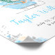 Cette affiche mignonne et amusante présente un adorable ours en traîneau bleu entouré de neige, de montagnes et de pins. De belles compositions de fleur en faux parties scintillant et des confettis argentés apportent une touche festive. Le texte combine écriture manuscrite et polices sans serif pour un look élégant et moderne. Il peut être personnalisé avec les statistiques de naissance de votre bébé, comme le nom, la taille, la date et l'heure de naissance, ou si vous souhaitez le donner comme cadeau de douche vous pouvez modifier et supprimer du texte.