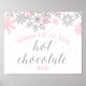 Réchauffez-vous au Hot Chocolate Bar Winter Onederland Snowflake Sign avec des flocons de neige rose et argent parties scintillant.