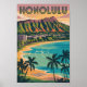 Affiche Honolulu Hawaii Illustration Voyage Art Vintage