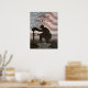 Honore les morts avec un dernier salut. En l'honneur de nos membres déchus des forces armées. Le soldat s'agenouille devant la tombe de son camarade déchu. Dans l'arrière - plan le drapeau des Etats-Unis.