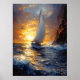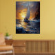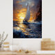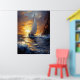 Un paysage marin impressionniste capturant un voilier naviguant sur des eaux lumineuses sous un ciel doré dramatique. Les coups de pinceau expressifs et les textures superposées mettent l'accent sur la lumière, le mouvement et l'atmosphère tandis que les vagues reflètent la lueur chaude de l'horizon. La composition se concentre sur l'émotion et le mouvement plutôt que sur les détails, transformant la mer en un paysage vibrant d'énergie et de calme. Idéal comme décoration murale pour les intérieurs inspirés par le style impressionniste, les voyages et les scènes côtières atmosphériques.