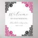 Affiche Hot Pink Black Floral Lace Wedding Welcome Sign