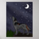 A wolf howls to the moon under a beautiful night sky. This design is available on a variety of products including T-shirts, coffee mugs, postcards and more! It can be customized or personalized by adding your own text or images.