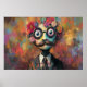 Affiche Humanoïde Whimsical avec grands yeux et cheveux fl