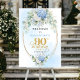 Célébrez un événement remarquable avec ce superbe panneau de bienvenue pour 90 ans d'anniversaire avec des hydrangeas bleus aquarelle, de la verdure d'eucalyptus et des accents dorés luxueux. Conçu pour une clarté exceptionnelle et une couleur riche, il est imprimé avec le processus de qualité supérieure de Zazzle pour des détails nets et des finitions magnifiques qui rendent votre décoration de célébration vraiment inoubliable.