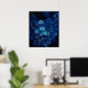 L'affiche présente de l'art floral coloré, des plantes d'été, des fleurs d'hydrangée bleue et des feuilles de raifort sur arrière - plan noir. Impressionnisme moderne, peinture pastel. © Clipso-Callipso / Julia Khoroshikh www.juliakhoroshikh.art #floralart #hydrangea #hugeleaf #greenery #blackgreen #blueandblack #modernfloral #softpastels #pastelpaint #zazzlemade #posters #wallart