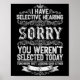 Affiche I Have Selective Hearing You Werent Selected Today