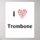 Affiche I Love Trombone Red Heart of Music Notes