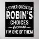 Affiche I Never Question Robin’s Choices - Robin D Name