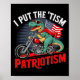 Affiche I Put The Tism In Patriotism Motorcycle Dinosaur