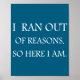 Affiche I Ran Out Of Reasons Funny Excuse Quote